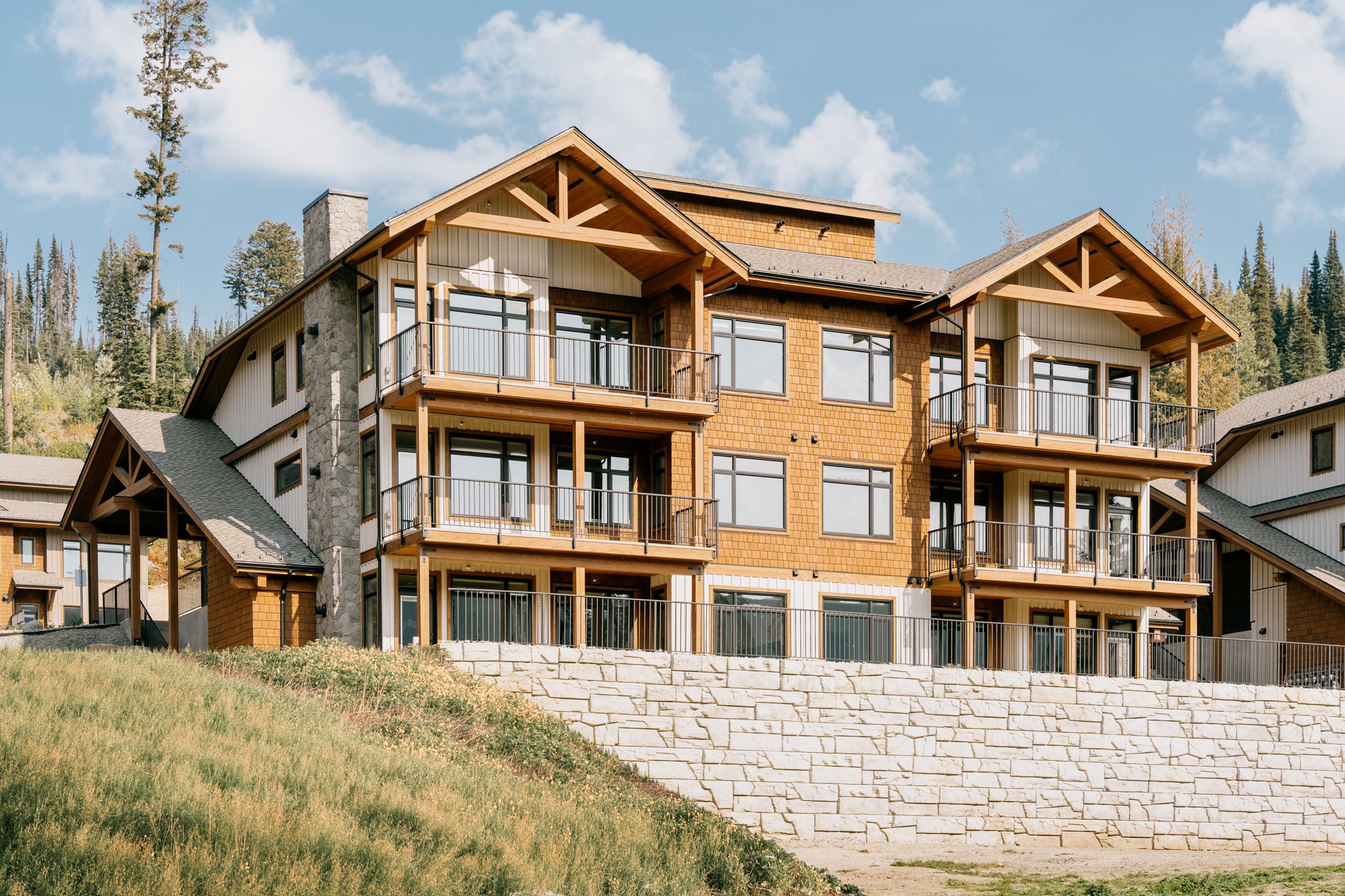 This project is clad with exposed wood exteriors, Hardie Plank siding, and cedar shingles to match the mountain resort aesthetic. Large windows were designed to ensure residents of this development have lots of natural light and views of the natural beauty around them.